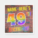 La parte delantera de este diseño de servilletas de papel con tema de cumpleaños emocionante, divertido y llamativo presenta un nombre personalizado y el mensaje "¡49º CUMPLEAÑOS!" con letras que tienen un patrón de gradiente inspirado en el espectro del arcoíris multicolor, sobre un fondo con patrón inspirado en una pared de ladrillos. El estilo está inspirado en el del arte callejero o grafiti dibujado en una pared. Servilletas de papel divertidas como esta podrían ser utilizadas en una fiesta de cumpleaños que se celebra para conmemorar el 49º cumpleaños de alguien.
