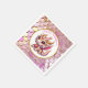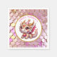 Un lindo dragón blanco, oro y chibi rosado en una fiesta de cumpleaños de chica con temática de gorra, servilletas de papel personalizadas. Fondo de báscula rosa y dorada.