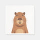 Un ilustracion encantador de un capibara que da directamente a la calle con una expresión tranquila y suave. La imagen capta las características únicas del capibara, como su cara redonda, sus ojos expresivos y sus bigotes distintivos. El estilo minimalista y los tonos tierra le dan un aspecto encantador, lo que lo convierte en un atractivo visual para los amantes de los animales.