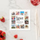 Create your own personalized 12 photo collage, napkins with your custom images on a simple modern white background. The napkins face also features your family name, established year and a "Love" handwritten script. Add your favorite photos, designs or artworks to create something really unique.