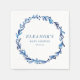 These baby shower napkins feature a hand-drawn blue botanical wreath paired with elegant, classic typography. The soft watercolor-style foliage creates a calm, timeless look that feels thoughtful and refined. Personalize the name and date to match your celebration. Perfect for cocktail hour, dessert tables, or place settings, and designed to coordinate seamlessly with matching baby shower stationery and décor.