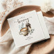 Introducing 'A Baby is Brewing' Coffee-Themed Napkins. Delight your guests with this charming design that boasts a creamy backdrop and a sophisticated title. A playful pairing of a cup of coffee and a baby bottle is nestled amongst coffee beans and fresh eucalyptus greenery, making these napkins the perfect addition to any baby shower.