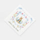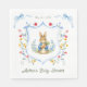 Set a lovely table to celebrate the upcoming arrival of your little one with this classic storybook-inspired baby shower paper napkin. Featuring a charming, watercolor style bunny holding a carrot, this design is framed by hand painted delicate blue ribbons, whimsical bows, and soft garden florals.