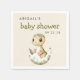 Estas servilletas adorables de ducha de bebé tienen un dinosaurio beige y verde acuarela que nace de su huevo, debajo de las palabras "baby ducha" con letra impresa a mano verde. Personalice el texto con el nombre de la futura madre y la fecha en sans serif de carbón gris.