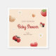 Las toallas de papel de ducha para bebés con adorables insectos de amor, quequitos, flores y ilustraciones de fresa, todo ello en un esquema de color rojo, blanco y marrón claro. Junto con los ilustraciones hay una letra de guión lúdica y un elegante sans serif en el que se escribe toda la información personalizada. Visita nuestra tienda para ver más artículos de esta colección.