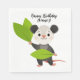 Featuring a cute opossum holding green leaves and the cheerful text “Happy Birthday [Name]!”, it’s perfect for woodland, nature, or animal-themed birthday parties.