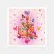 All cute pastel coquette with a tea party setting, tea cups, pastries, candle drum, bird, cat, butterfly, bee, dragonfly, cute things and etc