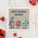 Añada un toque de ciencia ficción vintage a cualquier fiesta con estas servilletas personalizados. Con ilustraciones de robots lindos de estilo retro en tonos rojos y azules contra un fondo bronceado, estos están listos para ser personalizados con tu mensaje personalizado, haciéndolos perfectos para fiestas de cumpleaños para niños y fans de robots de todas las edades.