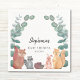 Estas servilletas de ducha de animales de bosque están decoradas con lindos amigos del bosque acuático y vegetación. Un zorro, un mapache, un erizo, un conejito y una ardilla están rodeados de vegetación rústica de eucalipto. Personalizable fácil. Acuarela original © Michele Davies.