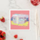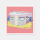 Camper rosa lindo en el dibujo de arte digital de la playa para los amantes de la vida viajera. Color de fondo personalizado.
