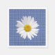 La margarita blanca de verano sobre un fondo de gingham blanco y azul. Se puede cambiar el fondo.