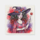 Estas servilletas de papel presentan una bruja caprichosa con una huella de acuarela rosada.