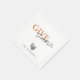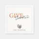 Toallas modernas de papel para la temporada de Acción de Gracias con pavo negro detallado, nombre familiar y "dar gracias" en letra clásica y guion.