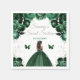 Esta elegante y glamorosa servilleta dulce de dieciséis años cuenta con una hermosa princesa con piel oscura en un vestido verde oscuro. El texto combina el guión manuscrito y las fuentes sans serif modernas para un aspecto elegante y sofisticado. Los arreglos florales, mariposa y confitis de plata crean la combinación perfecta entre rústico y moda. Gráficos de www.etsy.com/uk/shop/SunflowerDayLove