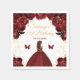 Esta elegante y glamorosa servilleta de cumpleaños incluye una hermosa princesa con piel oscura en un vestido de bola rojo oscuro. El texto combina el guión manuscrito y las fuentes sans serif modernas para un aspecto elegante y sofisticado. Los arreglos florales, mariposa y confitis dorada crean la mezcla perfecta entre rústico y moda. Gráficos de www.etsy.com/uk/shop/SunflowerDayLove