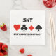 Puente / jugadores de puente duplicados a los que les encanta jugar en 3NT (tres no trump) disfrutarán de esta servilleta de papel con los cuatro trajes de cartas junto con el dicho "3NT Mi contrato favorito". ¡Haz que otros hagan una doble toma con una dosis de actitud de juego de puente con este memorable puente diciendo servilleta de papel!