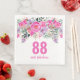 Elegante diseño para una fiesta de cumpleaños número 88 con un "88" rosado y escrito "fabuloso" adornado con un diseño floral femenino sobre un fondo blanco. edad, texto y color de fondo del personalizar.
