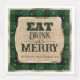 Estas servilletas fiestas personalizados tienen un tema de Navidades festivos. El fondo presenta un estilo rústico de manta de búfalo verde salpicada de copos de nieve. En el centro se imprimió un poster de estilo de papel pergamino vintage con un borde de Relieve metalizado dorado. La frase "Come Bebe and Be Merry" se imprime en la parte superior en una fuente verde oscuro, seguida de un nombre de familia de ejemplo. Puede personalizar las servilletas para incluir su propio nombre personalizado u otro texto.