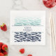 Las piezas de esta elegante suite nupcial presentan un estilo náutico clásico con un aspecto limpio y minimalista. Las olas estilísticas en tonos de agua a azul marino y un ilustracion de caballito de mar proporcionan un toque único. En esta servilleta de papel de coordinación, una pancarta blanca bordeada de azul marino sobre ondas abstractas, crea una etiqueta simple pero llamativa para sus nombres y fecha de boda. Ideal para bodas de yate, barco, playa o de verano. Busque ID836 para ver este conjunto completo y otros con acentos de elementos marinos alternativos.
