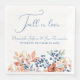 Estas servilletas personalizadas presentan un tema floral romántico de Otoño en tonos azul polvoriento, beige y cobre. Flores de estilo acuarela, bayas y follaje de otoño están colocados a lo largo de la parte inferior para parecerse a un jardín silvestre. Pequeñas bayas azules están entrelazadas con flores de color cobre y hojas de color óxido. La frase "Enamórate" está impresa en la parte superior en una elegante fuente de escritura, seguida de nombres de novios y una fecha de boda de muestra.