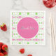servilleta boda con motivos bonitos rosas, verdes y blancos. El texto de agradecimiento se puede personalizar a cualquier color o mensaje. El texto también es extraíble. El círculo rosado también se puede cambiar a cualquier color para que se coordine con la decoración boda. Personalice con los nombres de novias y novios, y fecha de boda para crear servilletas personalizados.