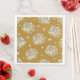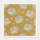 Cuchillas de papel con estampado floral de ramos de flores rosa pálido, oro y azul sobre un fondo amarillo. Campo, estilo cabaña.