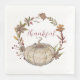 Toallas de papel estilo rústico estilo campo de acción de gracias, con una calabaza con un toque de purpurina, rodeada por una corona de follaje de otoño. acuarela de bonito con un guión "agradecido".