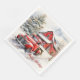 Un camión de granja rojo vintage que te lleva de vuelta a los viejos tiempos, decorado para la temporada de Navidades. Un granero rojo completa la escena Las placas de papel coincidentes están disponibles en el mismo diseño.