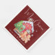 Esta servilleta de fiesta de Navidades personalizados presenta un lindo ilustracion acuático de gente de pan de jengibre. Un pequeño hombre de pan de jengibre está parado frente a su casa de pan de jengibre. A la izquierda hay un árbol decorado con bonito. El fondo es un color burdeos rico.