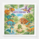 This cheerful paper napkin design features a variety of cute cartoon dinosaurs surrounded by tropical greenery, creating a fun and inviting prehistoric scene kids absolutely love. To create a fun and coordinated party look pair them with matching cups, plates and other decorations for a fun and unforgettable birthday party for your child. The name and birthday message are easily customized. Available in other sizes and styles.