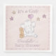 Estas servilletas personalizados de ducha para bebés presentan un ilustracion de color agua sobre un fondo de papel de pergamino rosa. En la parte inferior, se ve una niña elefante con un globo en forma de corazón rosado. Una pila de bloques de alfabeto se coloca delante de ella. La frase "¡Es un Chica!" se imprime en la parte superior seguida de un nombre de ejemplo. Puede personalizar las servilletas para incluir su propio nombre o texto personalizado.