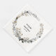 Una elegante servilleta de bodas de invierno con una rústica corona de hojas y pinos pintada a mano, con sus nombres y fecha numérica.