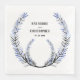 Media corona de tallo, hojas negras, blancas y polvorientas azules y bayas negras con nombres y fecha numérica en letras rústicas.