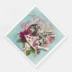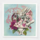 Versión coloreada de Alicia en el Conejo Blanco del País de las Maravillas como miembro del tribunal de la Reina de los Corazones. Añadido floral sobre fondo azul angustiado. Perfecto para fiestas de té Mad Hatter y otros eventos caprichosos.