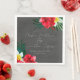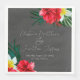 Esta servilleta de fiesta personalizada presenta un tema de boda tropical de playa o isla. El fondo es un gris simple y elegante con coloridas flores tropicales hawaianas. Los ramos florales con hojas de palmera, hibisco y flores de frangipani acentúan los bordes.