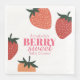 Estas servilletas personalizados con ducha para bebés tienen un bonito tema de fresa. Dos fresas grandes se colocan en las esquinas superior derecha e inferior izquierda. La frase "Berry Sweet" se imprime en una gran fuente rosa con un nombre de ejemplo superior que puede personalizar para incluir su propio nombre o texto personalizado.
