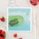 Escarcha atrapando insecto. Perro de caza de ranas. Durante su vida, una rana romperá miles de insectos con su lengua pegajosa y extensible. Rana verde sobre la almohadilla de lirio tratando de atrapar un escarabajo volador. Ilustracion de libros.