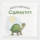 Estas servilletas fiestas personalizados tienen un ilustracion de tortuga. Una pequeña tortuga verde se coloca en la parte inferior izquierda con un sol que brilla sobre ella. Es bueno para una ducha de babú o una fiesta de cumpleaños para niños. En la parte superior se imprime un ejemplo del mensaje "Cumpleaños feliz", seguido de un nombre de ejemplo. Puede personalizar las servilletas para incluir su propio nombre o mensaje personalizado de su elección.