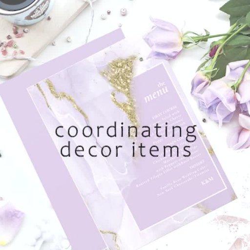 Este diseño a medida, con una tinta alcohólica abstracta en tonos de lavanda suave a violeta lila con acentos dorados brillantes, es perfecto para una boda romántica y elegante. La servilleta de papel de coordinación que se muestra aquí proporciona una plantilla para añadir fácilmente sus iniciales, fecha de boda y mensaje de agradecimiento. Buscar ID990 para ver otras piezas en este conjunto de bodas coordinado.