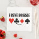 ¿Organizar un evento con temática de puente? Muestra tu amor por el juego del puente con esta servilleta de papel que incluye los cuatro trajes de cartas junto con el siguiente puente que dice en letras de amor: "I Love Bridge".