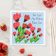 Toallas para la cena en papel de diseño con estampado de tulipán rojo brillante. El fondo azul claro se puede cambiar a cualquier color. Las impresiones de tulipán se pueden quitar para crear una servilleta azul claro sólida.