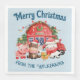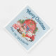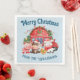Esta servilleta de fiesta de Navidades personalizados incluye un bonito ilustracion de personalizado de acuarela de una granja. Pequeños animales de granja están vestidos con sombreros de Santa en las afueras de una casa de campo. El fondo es de color azul claro.