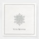 Estas servilletas de estilo estándar se muestran en el tamaño de la cena. Mostrado con un único copo de nieve de color plateado en el centro sobre un fondo blanco, un delgado borde gris plateado con bordes exteriores blancos y texto que lee Feliz Navidad. Personalizar este artículo o compre como está diseñado.