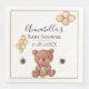 Estas servilletas personalizados para la ducha de bebé tienen un tema adorable de abejas y miel. Un oso lindo comiendo miel es retratado en la parte inferior con dos abejas zumbando cerca. La composición de un abejorro ilustrado representa el área de texto en el centro. Se imprime un nombre de ejemplo sobre un evento, "Baby Shower" seguido de la fecha de la celebración. Puede personalizar las servilletas para incluir su propia información fiesta u otro texto personalizado.