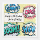 Estas servilletas de fiesta personalizadas presentan un tema de libro de historietas colorido sobre un fondo amarillo. Palabras y frases de acción de tiras cómicas populares como "¡Oh, Snap!" "¡OMG!" "¡BOOM!" y "¡WOW!" se colocan alrededor de los bordes en burbujas de diálogo. Un mensaje de "Feliz Cumpleaños" de muestra se imprime dentro de un área de texto seguido de un nombre de muestra. Puede personalizar las servilletas para incluir su propio nombre personalizado u otro texto. Es perfecto para una despedida de soltera, fiesta de cumpleaños u otra celebración emocionante.