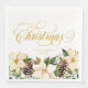 Personalized Joyful Christmas White Poinsettia Napkins. Beautiful Golden Christmas Typography and White Poinsettia Christmas floral, berries and pine cones arrangement.