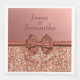 La colección Rosa de Bodas Gold Satin Bow - que contiene todo lo necesario para que su día especial sea elegante y único. Una selección de hermosos y elegantes elementos de diseño de un arco satinado dorado rosa, texto de color oro rosa con fondo purpurina simulado o metálico y degradado. Todo el texto es personalizable - simplemente agrega nombres, fechas, lugares o mensajes de su elección. Los productos incluyen: invitaciones, sobres, sellos, guardar los productos de fecha, tarjetas RSVP, regalos, artículos de recepción, vajilla, servilletas, tarjetas y regalos de agradecimiento, tarjetas de felicitación, papel, pancartas, papel de embalaje, cintas, favores, galletas, dulces y chocolates. Por favor, siéntase libre de contactarme si no ve el producto que le gustaría dentro de la gama o si le gustaría la opción de diferentes elementos/colores de diseño etc - estoy encantado de ayudar.