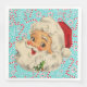 El dulce diseño de Santa Claus Vintage de un Santa Claus Jolly con un fondo turquesa con menta y latas de dulces.
