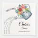 Servilletas de papel de bienvenida personalizadas para una ducha, boda o bebé, con una regadera de hojalata galvanizada rústica llena de flores y follaje. Del pico caen gotas de cristal brillantes que imitan el agua. Fácil de sustituir detalles.