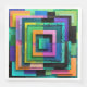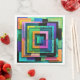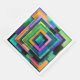 A geometric design composed of colorful square shapes covers the paper napkin.